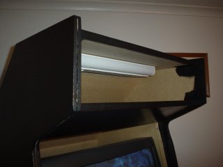 I think that's enough work until in the morning... ok, ok, it's 4AM right now, and I WANT to work some more, but my next step is to put on the t-molding (first time it will be on and first time for me doing it) and I'm afraid the rubber mallet will wake up the wife and kids. Yes, I did try before giving up and the bangs kept reverberating inside the cabinet. Also get to Rust-O-Leum the coin door tomorrow and install that as soon as it dries.
